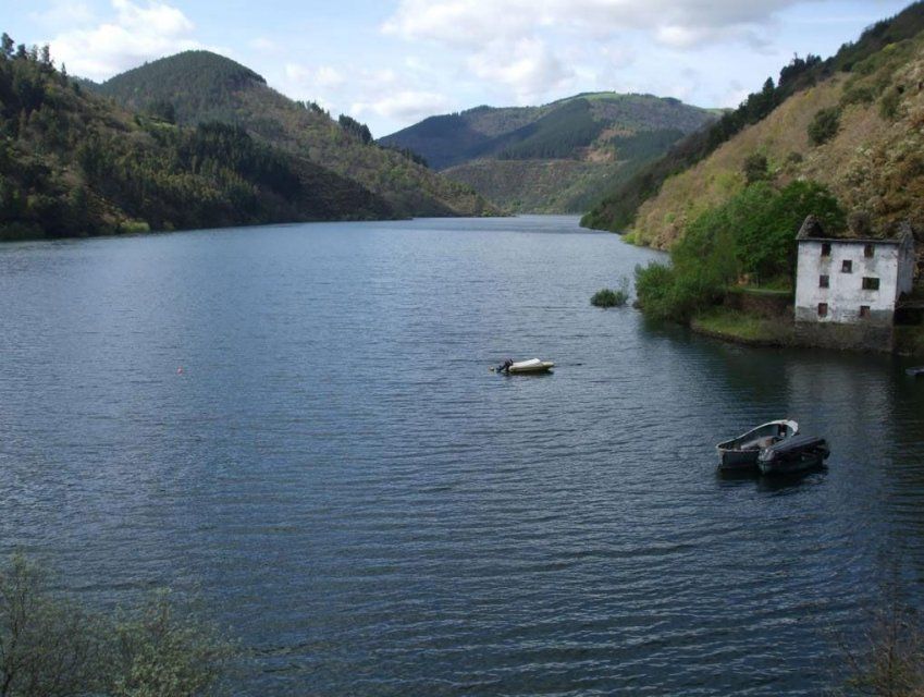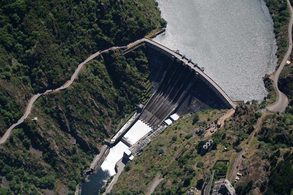 El edificio principal impresiona por su volumen macizo, el ritmo de los vanos verticales y la armonía entre el hormigón y el paisaje natural del río Navia, integrando la obra de ingeniería en el entorno con una belleza singular.